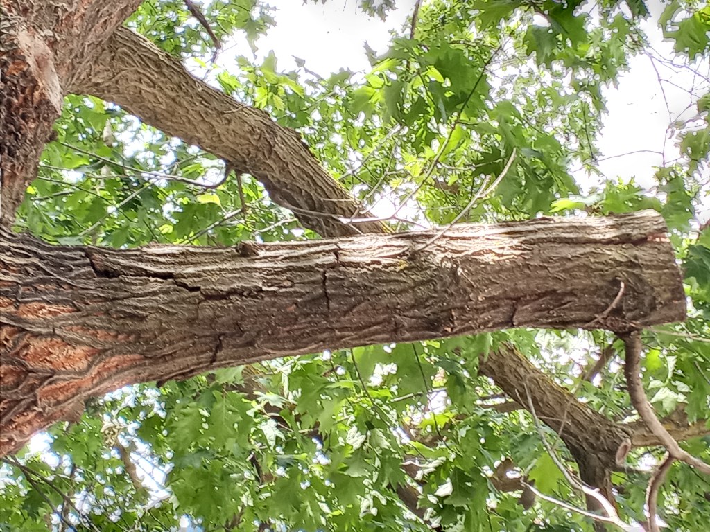 Fortunately, all three of those trees survive. Unfortunately, the two trees on public land have been pruned by arborists and the tree on private land has been cut by a neighbor riding a 40′ bucket lift. All three trees would be even larger today had they not been pruned.