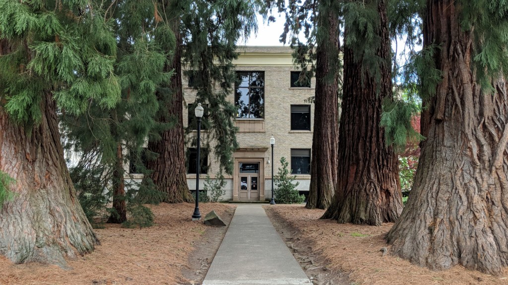 Among the thousands of Giant Sequoia in the Pacific NW that grew from Porter’s seeds are the trees at the Washington County Courthouse, a short distance from the Porter nursery. The moment is recalled years later by Rebecca Goodin in a letter to the Hillsboro Argus dated October 6, 1927: